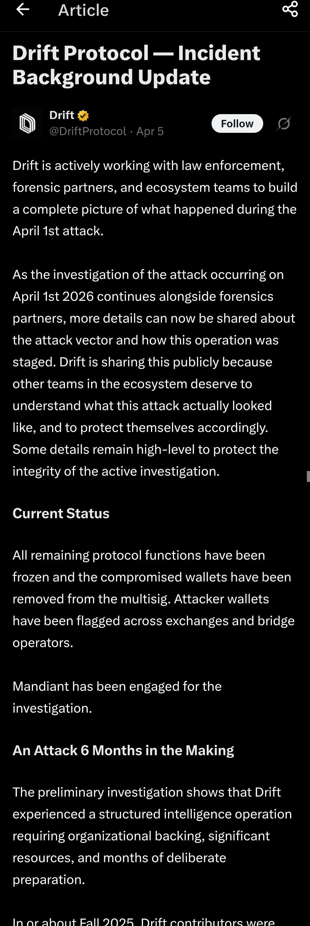 (Full Incident Background Update from Drift is on X.)